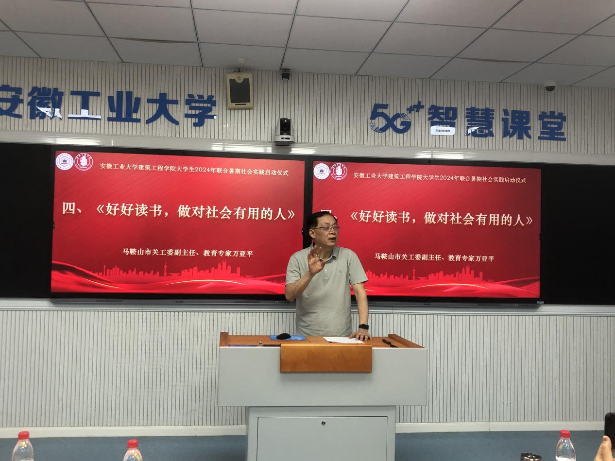 在秀山校区教D201智慧教室举办2024年大学生暑期社会实践启动仪式。马鞍山市关工委副主任万亚平,成人漫画
