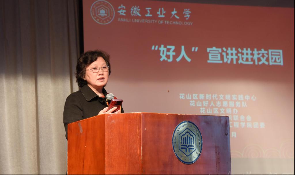 为深入贯彻落实习近平总书记关于弘扬雷锋精神的重要论述,深刻领会雷锋精神的时代内涵,引领广大团员和青年在志愿服务中大力弘扬“奉献、友爱、互助、进步”的志愿精神,3月24日下午,学校联合马鞍山市花山区新时代文明实践中心、花山好人志愿服务队、花山区文明办、花山区社会组织联合会开展“‘好人’宣讲进校园”活动。马鞍山市花山区相关工作人员、成人漫画