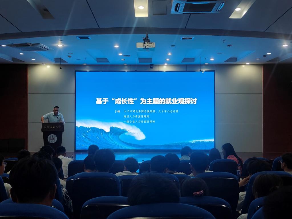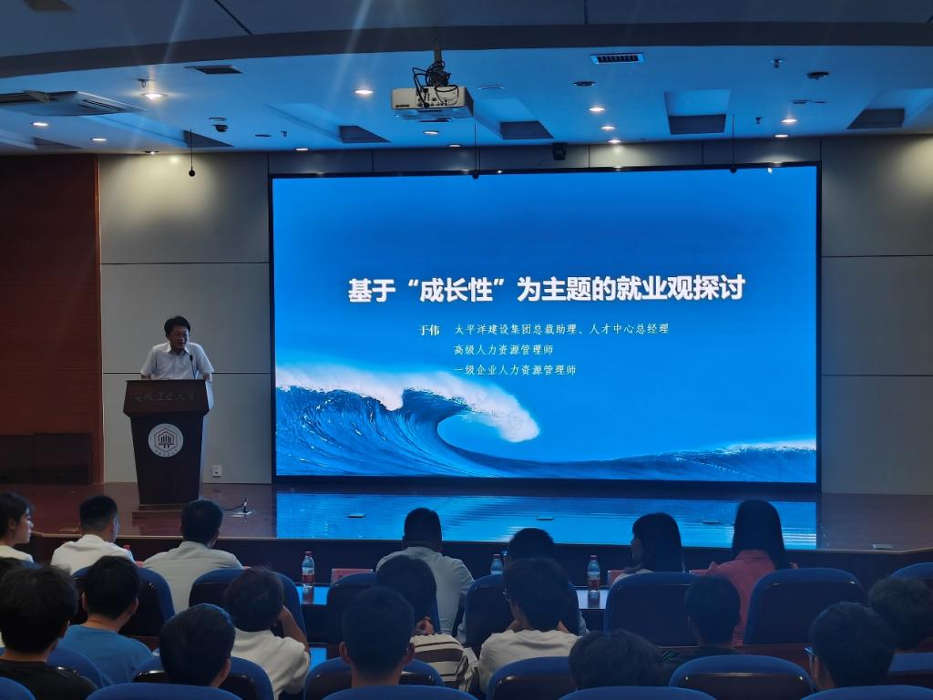 于伟以太平洋建设为切入点,分别从“就业及就业的背景环境”“毕业生的就业视角”“用人单位的用人视角”“太平洋建设的人才培养示例”“入职准备”五个方面展开对基于“成长性”为主题的就业观探讨。从用人单位视角,结合“冰山理论”详细讲解了用人单位对毕业生的各方面综合考量,通过测评等多种方式对毕业生进行“画像”,以便挑选出更符合用人要求的毕业生。他强调,希望大学生能始终记住其立身之能——学习能力,做好职业规划,努力提升技能,以最好的心态领跑职场。