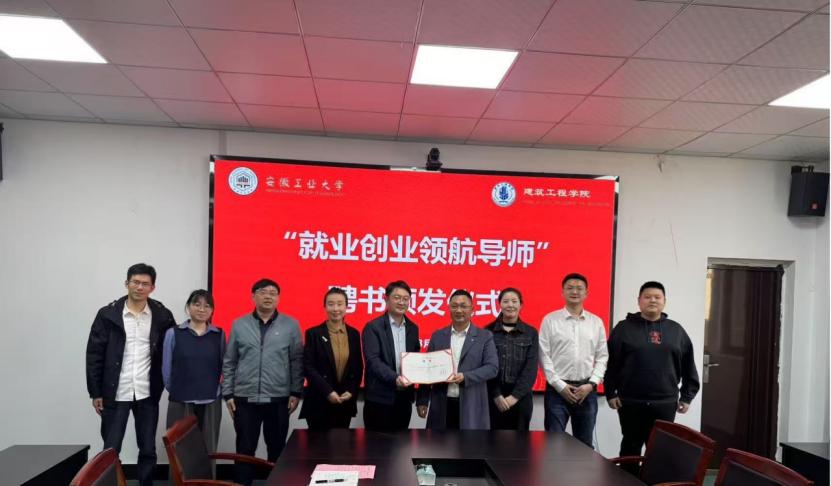 在校企交流会上,学院党委书记张虎首先对学院的发展历程、学科建设、专业特色及人才培养成果进行了介绍,随后上海宝冶南京分公司技术质量部副部长张海堂详细介绍了公司的发展历程、业务范围及行业优势,分享了企业在建筑领域的创新成果与实践经验。双方就进一步加强产学研合作、学生职业生涯规划和就业指导合作等事宜达成了初步意向。最后,举行学院“就业创业领航导师”聘书颁发仪式,张海堂校友受聘为学院“就业创业领航导师”。