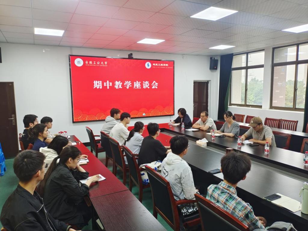 在秀山校区建工北楼310会议室召开2024-2025学年第二学期期中教学检查学生座谈会。学院教学督导专家组、各年级辅导员及学生代表共30余人齐聚一堂,围绕本学期课程教学、教风学风、教学管理等方面展开深入交流。