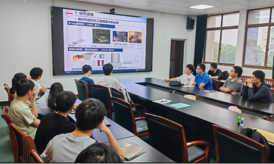 师生作题为“地震超材料带隙特性与隔震性能研究”的学术报告。部分专业教师、研究生参加了报告会。报告会由土木工程系教工党支部书记王士龙主持。