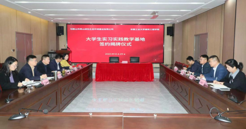 与马鞍山市两山绿色生态环境建设有限公司共建“大学生实习实践教学基地”签约暨揭牌仪式隆重举行,就服务地方绿色建造产业发展开展深度合作。
